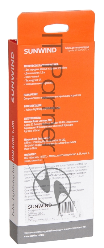 Кабель SunWind USB (m)-Lightning (m) 1.2м белый блистер