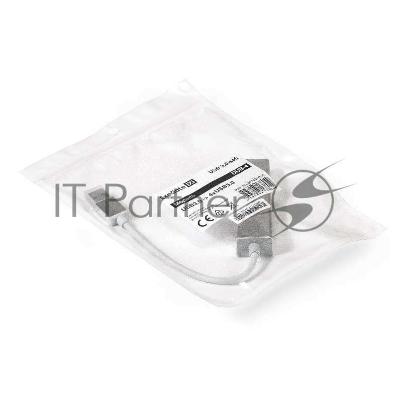 USB-Хаб (концентратор) ExeGate DUB-4 (кабель-адаптер USB3.0 --> 4xUSB3.0, Plug&Play, серебристый)