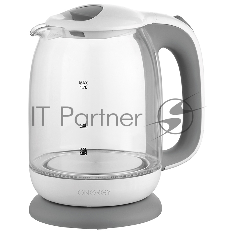 Чайник ENERGY E-281 (1.7л) стекло, пластик, цвет бело-серый