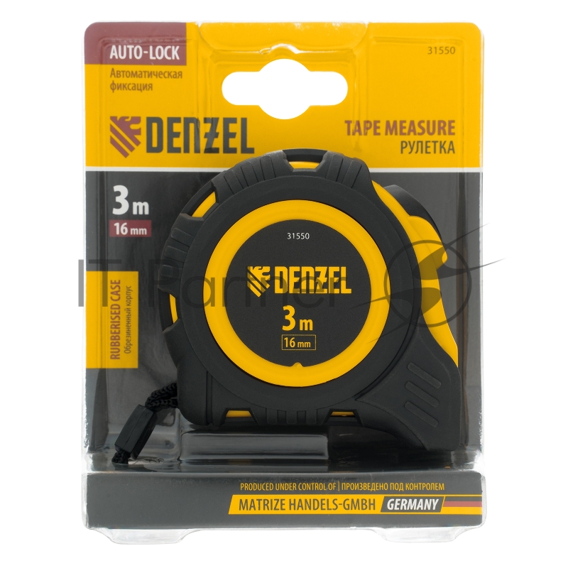 Рулетка 3м х 16мм, обрезиненный корпус, автоматическая фиксация// Denzel