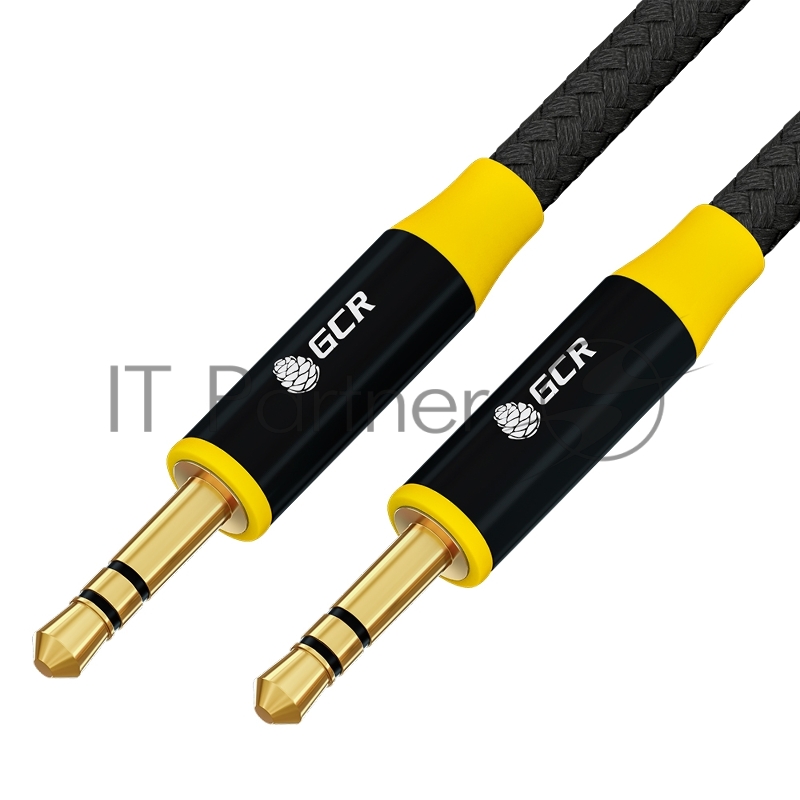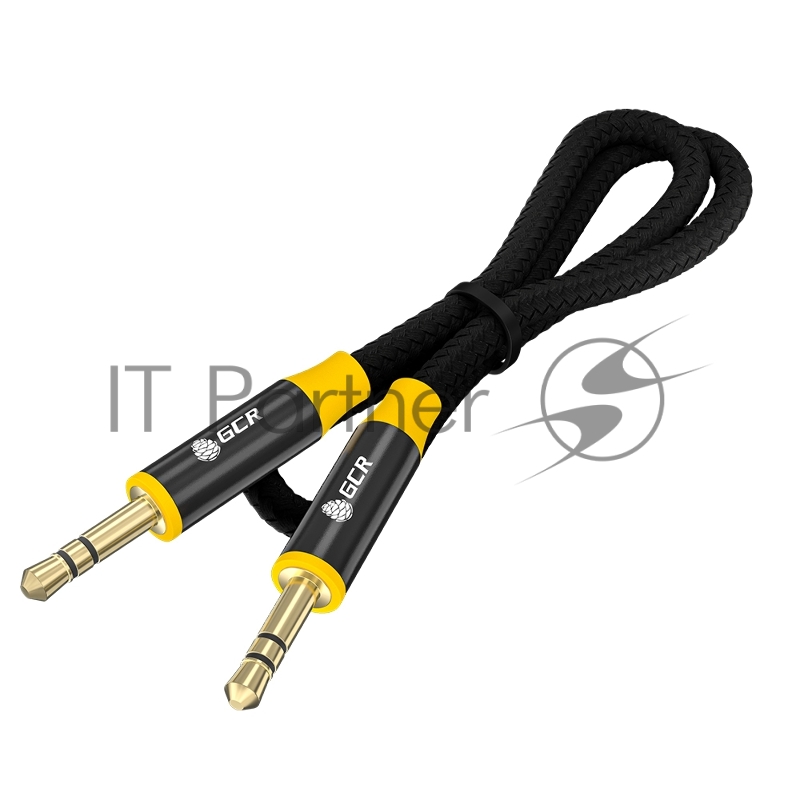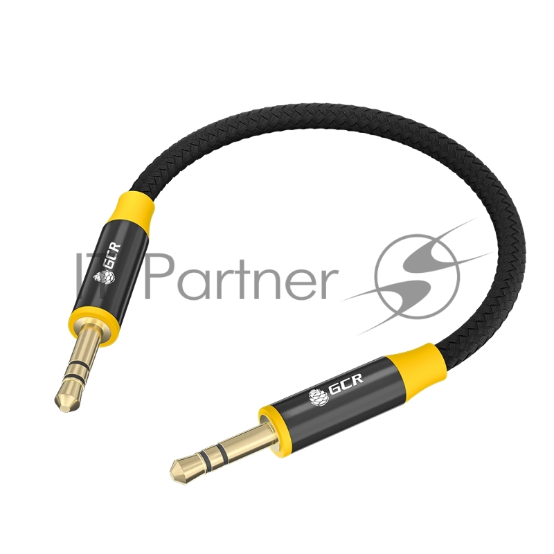 Кабель GCR 0.5m аудио jack 3.5mm/jack 3.5mm черный нейлон, GOLD, AL case черный, желтая окантовка, M/M, GCR-54245