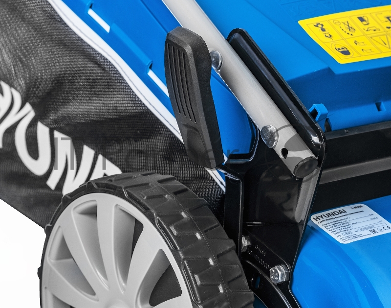 Бензиновая газонокосилка HYUNDAI [L 4610SE] {самоходная, Электрозапуск, двигатель Hyundai ICV145,4-х такт, 3.5 л.с./145 см3, Ширина среза 45,7 см, Высота среза 25-75 мм, 35 кг }