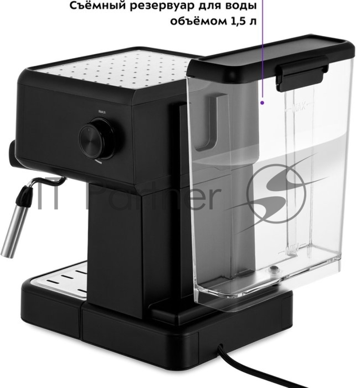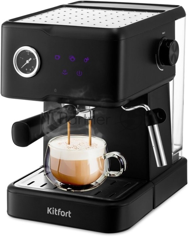 [Пылесос] Кофеварка рожковая, Kitfort, КТ-7124, Объем резервуара для воды 1.5 л, Мощность 950 Вт, Тип нагревателя бойлер, Давление15 Бар, Используемый кофе молотый, Цвет черный