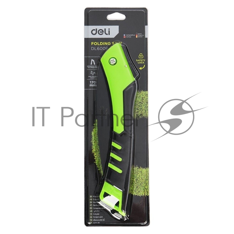 Садовая пила складная Deli DL6006 180мм, сталь 65MN, шаг зубьев 7 TPI, обрезиненая ручка, шлифовка зубов с 3-х сторон, двухрядное распределение кромок