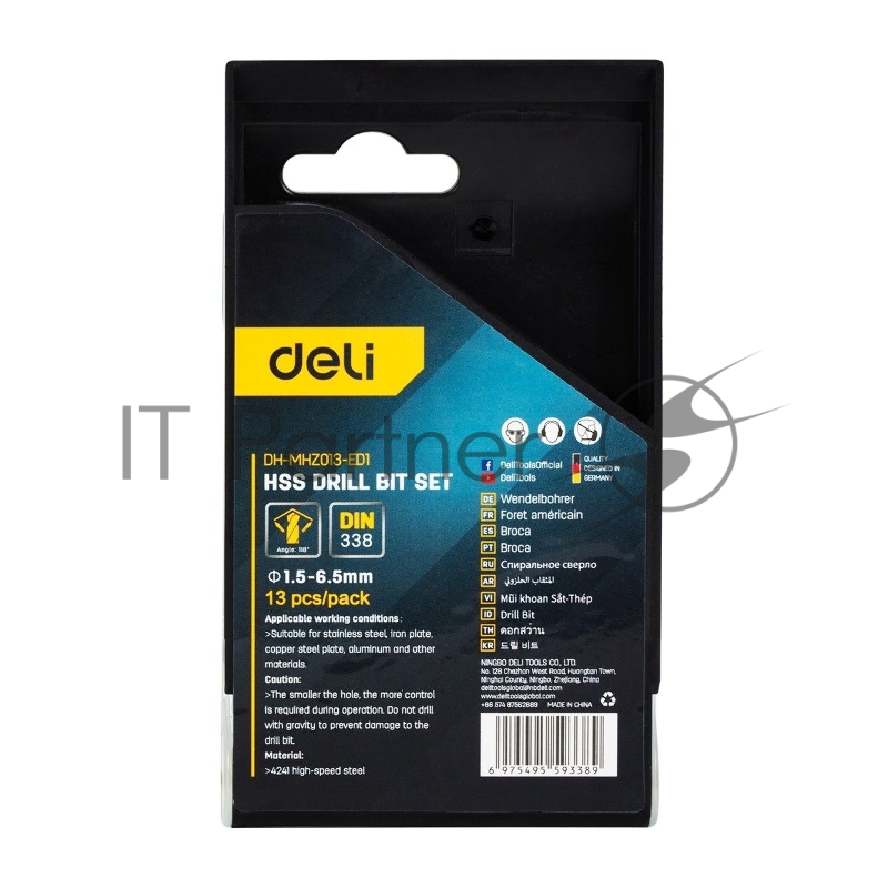 Набор сверл по металлу HSS (1,5-6,5мм, 13 шт) Deli DH-MHZ013-ED1 пластиковый кейс