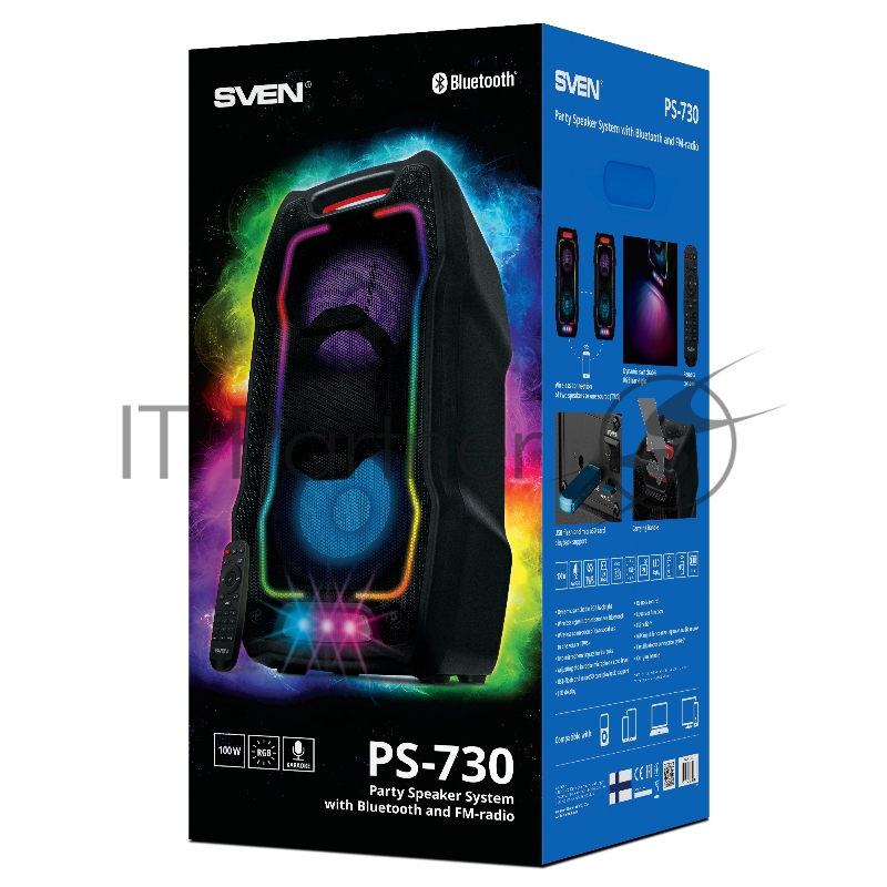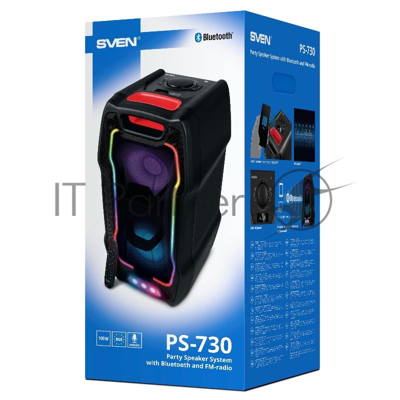 Портативная акустика SVEN АС PS-730, черный (100 Вт, TWS, Bluetooth, FM, USB, microSD, LED-дисплей, 4400мА*ч)