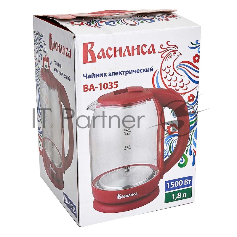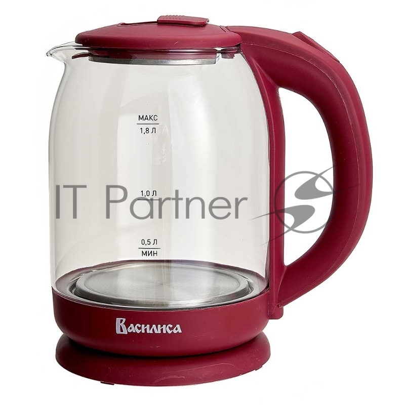 Чайник электрический ВАСИЛИСА ВА-1035 1,8л, стекло, бордовый, 1500 Вт(12)
