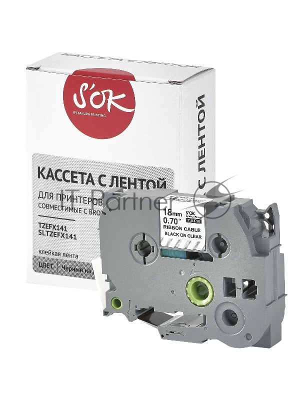 Кассета с лентой SOK by Sakura Printing TZEFX141 для Brother, черный на прозрачном, 18мм/8м , наклейка