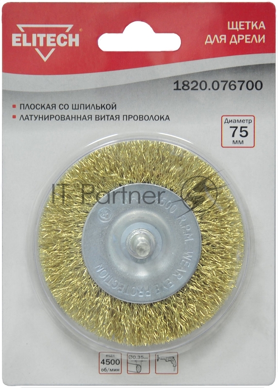 Щетка дисковая по мет. Elitech 1820.076700 d=75мм (шлифовальные машины/дрели) (упак.:1шт)