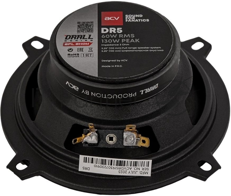 Колонки автомобильные ACV DRALL DR5 (без решетки) 130Вт 94дБ 3Ом 13см (5дюйм) (ком.:2кол.) широкополосные однополосные