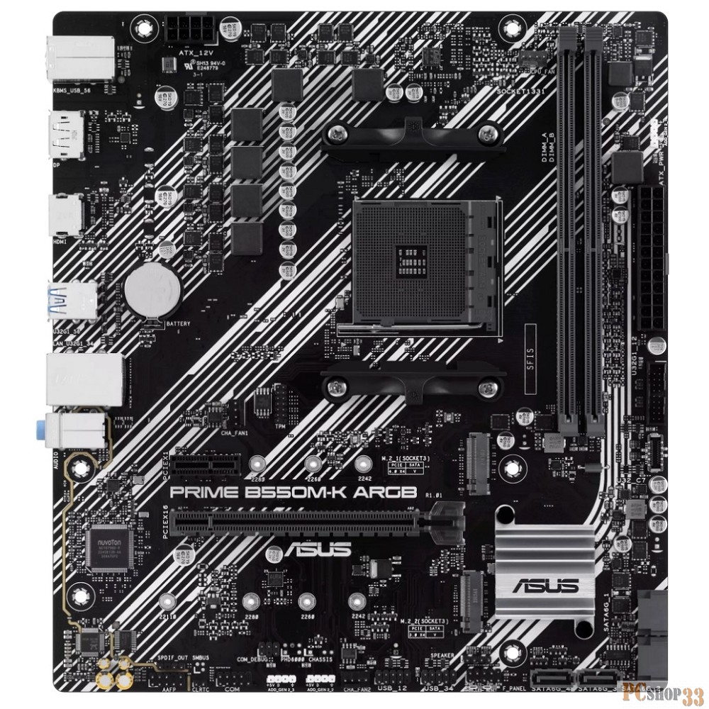 Материнская плата ASUS PRIME B550M-K ARGB, Socket AM4, B550, 2*DDR4, DP+HDMI, SATA3 + RAID, Audio, Gb LAN, USB 3.2, USB 2.0, COM*1 header (w/o cable), mATX 90MB1GC0-M0EAY0