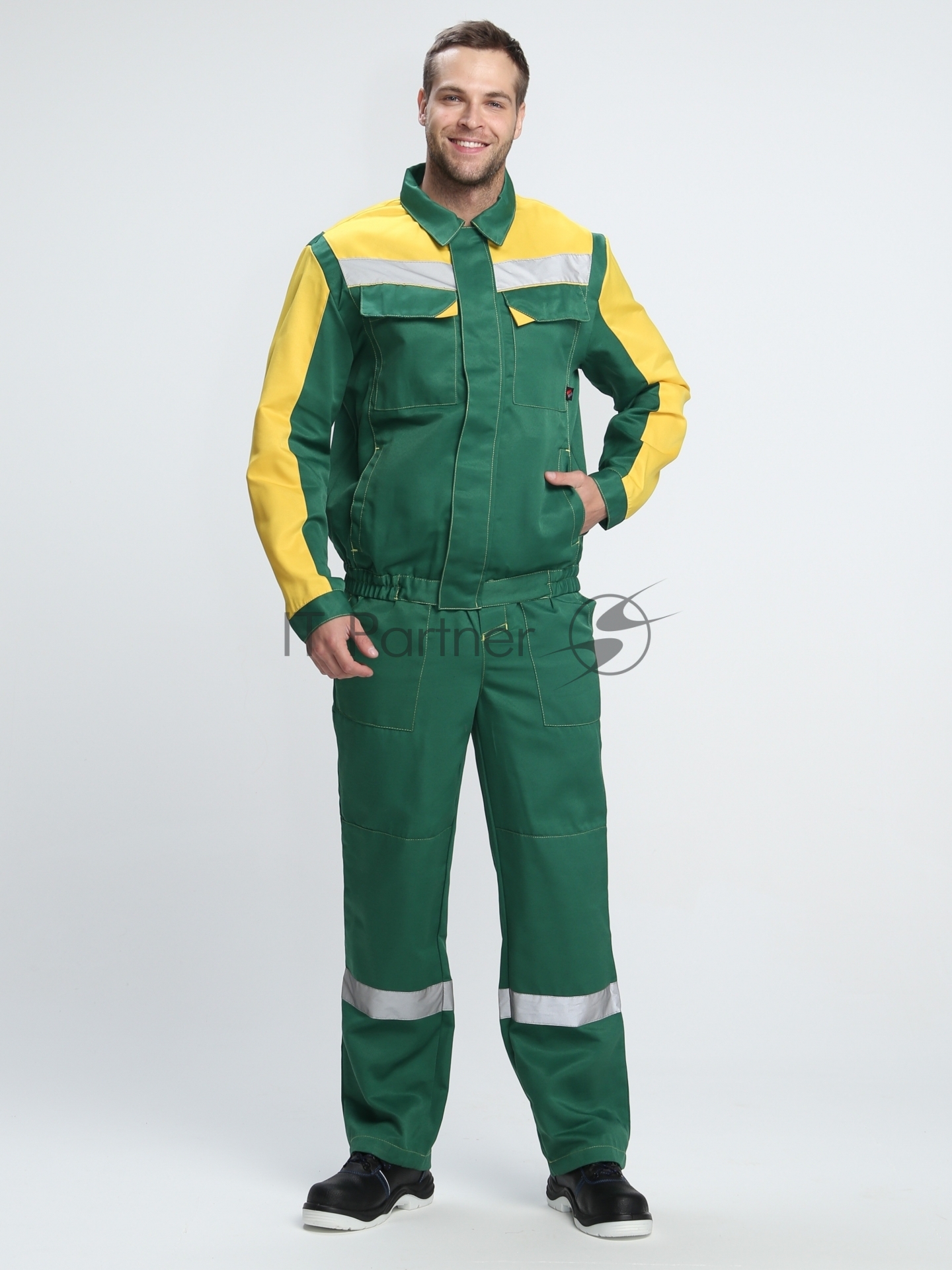 Костюм Сфера NEW (ткань Смесовая,210) полукомбинезон, зеленый/желтый, 48-50/ 182-188