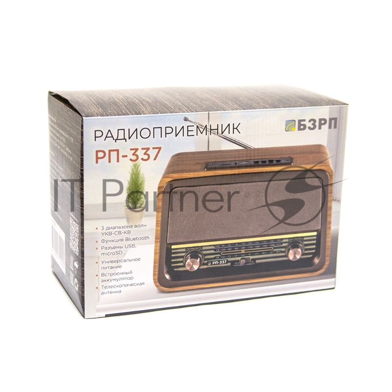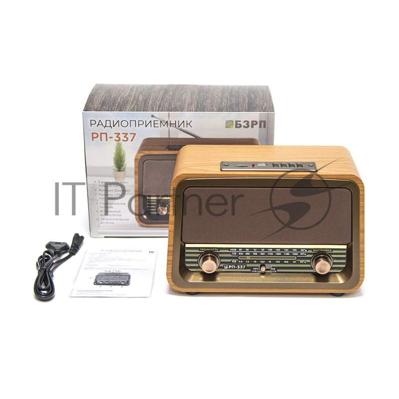 Радиоприемник БЗРП РП-337, УКВ 88-108МГц,СВ,КВ, корпус МДФ,220V, DC6В, акб 1200мАч,BT/USB/microSD