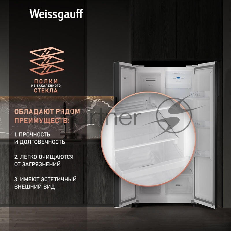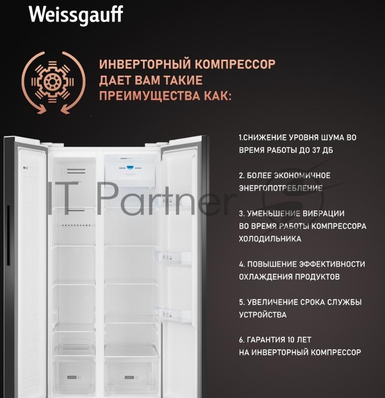 Купить холодильник Weissgauff WSBS 500 Inverter NoFrost White Glass в Коврове. Заказать на сайте. Доставка из "Ваш Компьютер". Ковров пр-т Ленина 20. Доставка