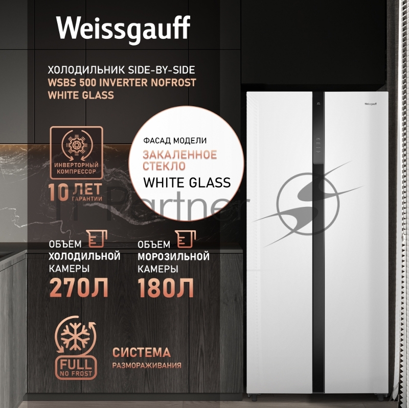 Код производителя: WSBS500InverterNoFrostWhiteGlass