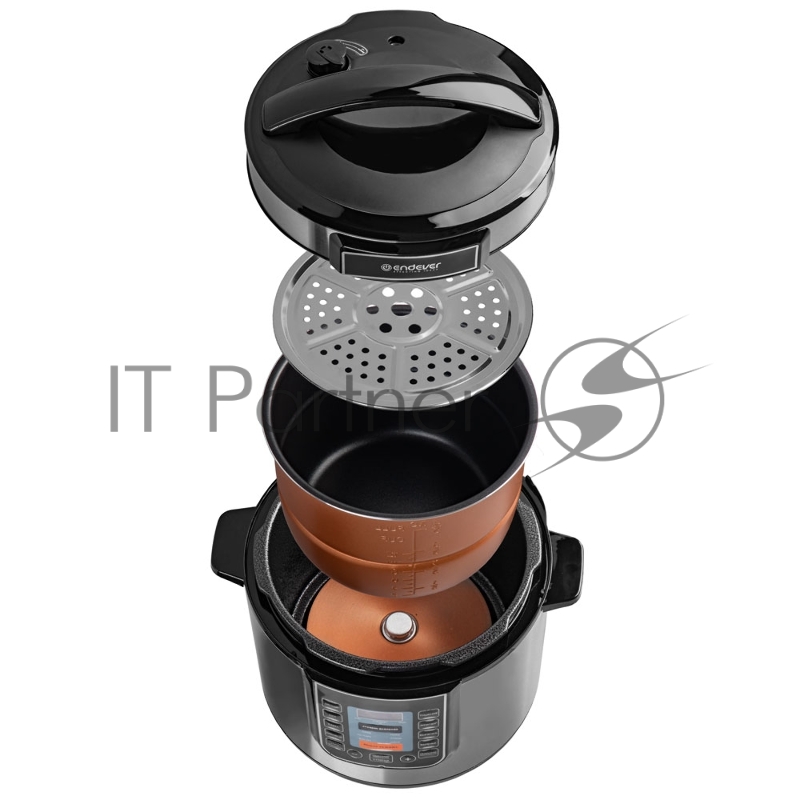 Скороварка-мультиварка электрическая Endever Vita-132, черный/стальной, мощность 1200 Вт, емкость 6л, 16 авторежимов работы, книга рецептов, 2 шт/уп.