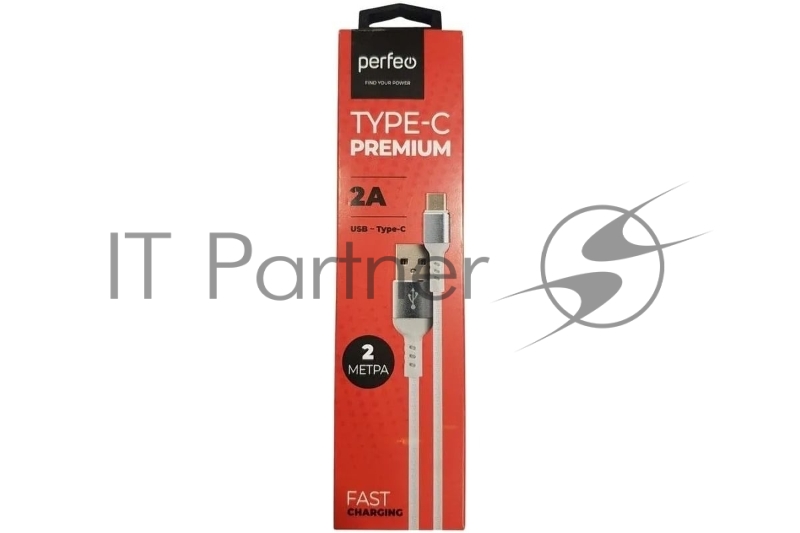 Кабель PERFEO USB2.0 A вилка - USB Type-C вилка, белый, длина 2 м., бокс (U4908)
