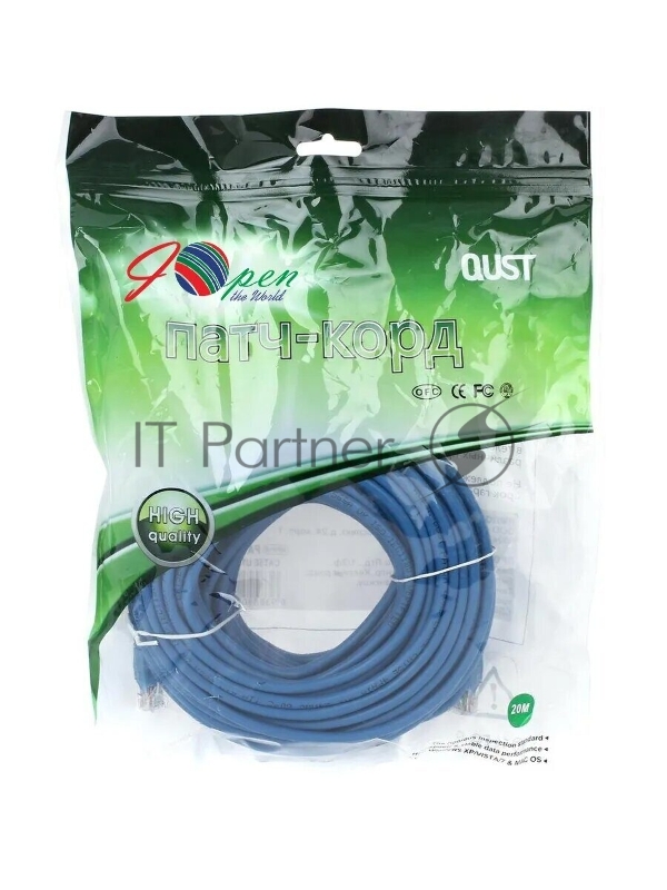 Патчкорд литой Aopen UTP кат.5е 20м синий
