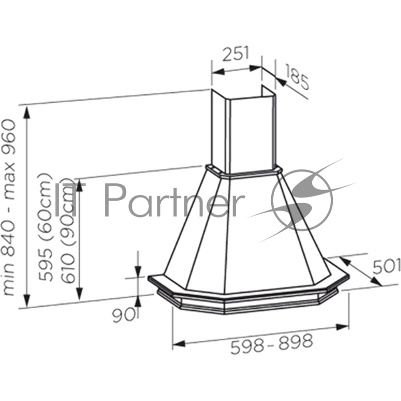 Вытяжки JET AIR/ Купольная, 90 см, 990 куб. м. , белый+неокрашенное дерево