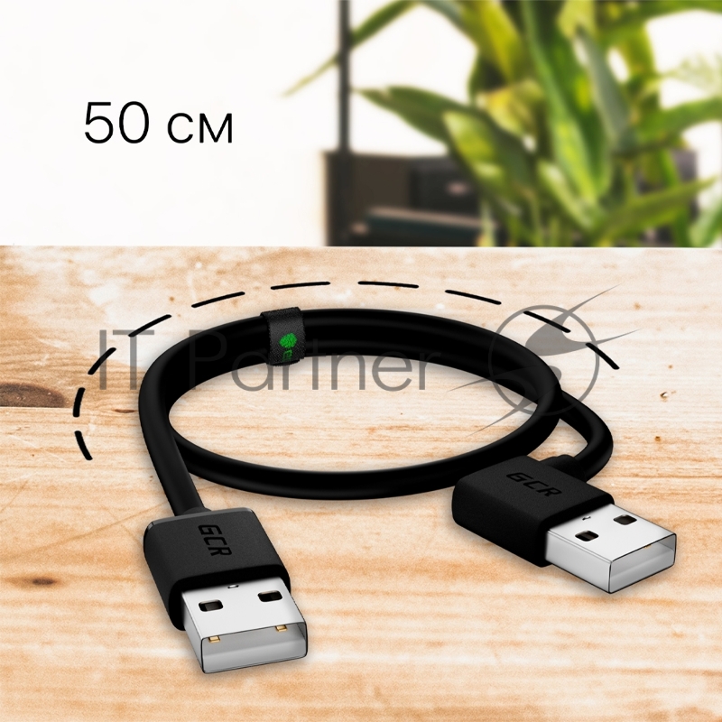 Кабель GCR 0.5m USB 2.0, AM угловой левый/AM, 28/28 AWG, экран, армированный, морозостойкий, GCR-AUM5M-BB2S-0.5m