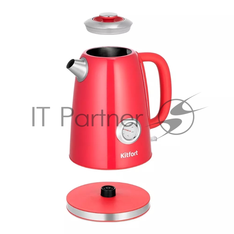 Чайник электрический Kitfort КТ-6665 1.7л. 2200Вт красный/нержавеющая сталь корпус: нерж.сталь/пластик