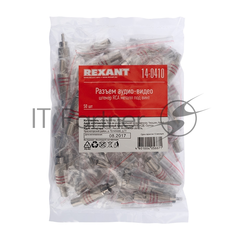 Разъем штекер RCA металл под винт черный/красный REXANT