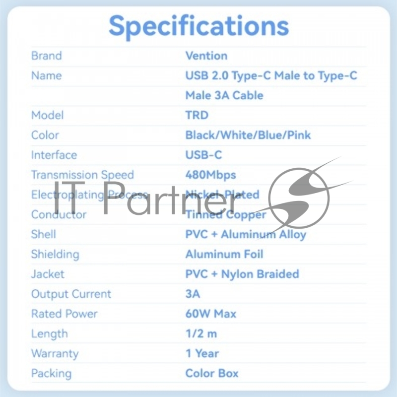 Кабель Vention USB 2.0 CM/CM - 2м. Черный 3А PD60W
