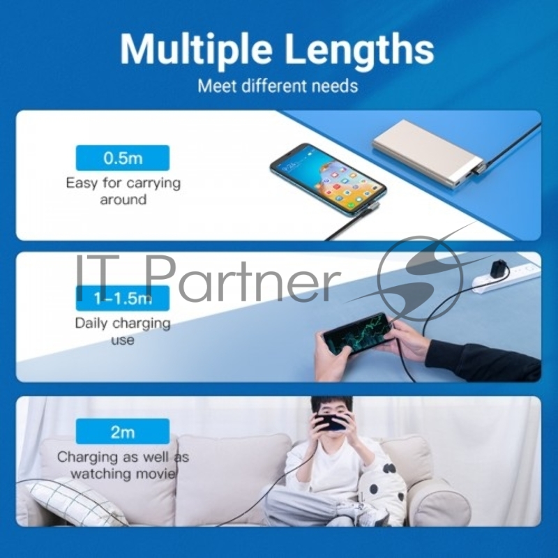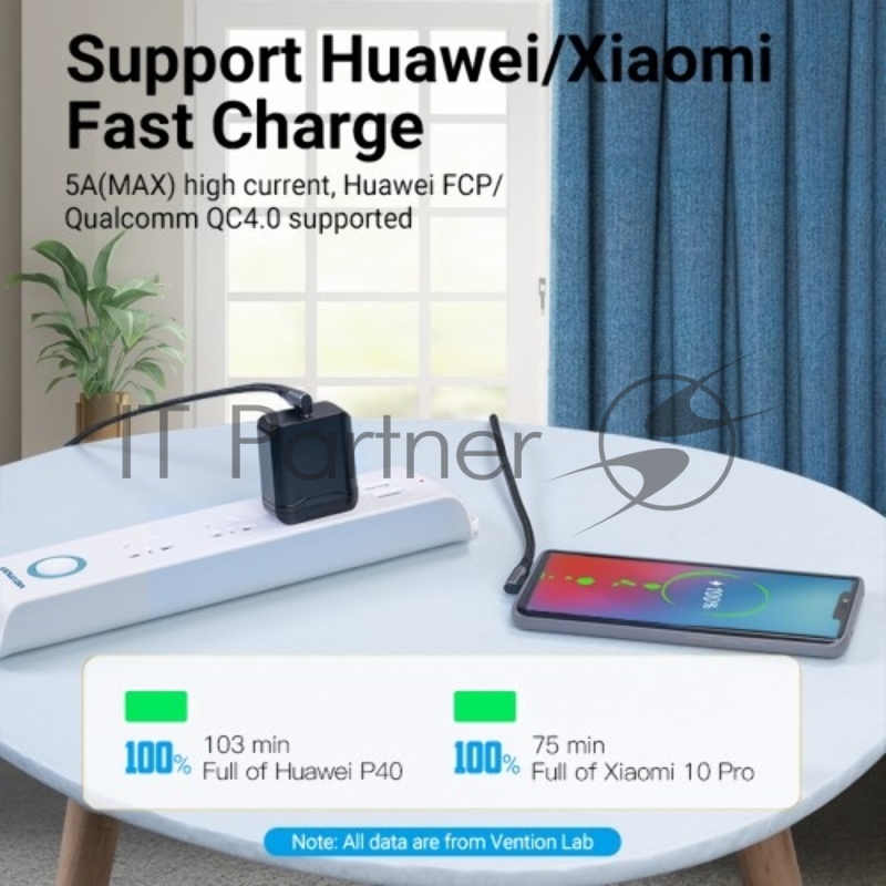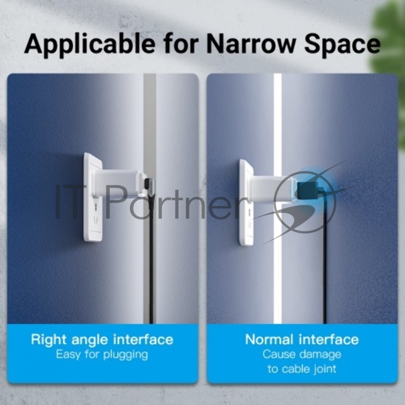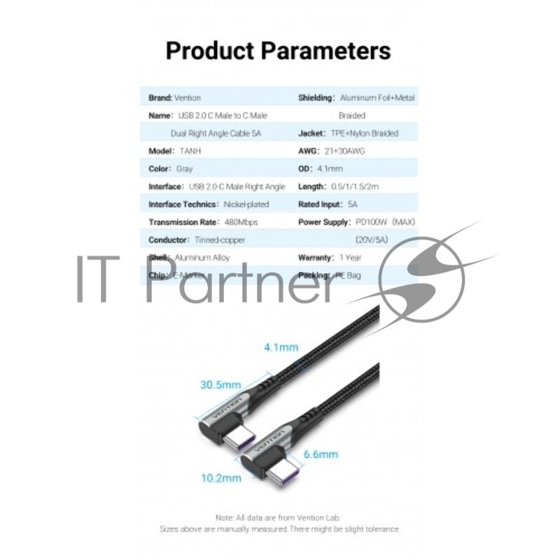 Кабель Vention USB 2.0 CM/CM угловой - 1м. Серый 5А PD100W