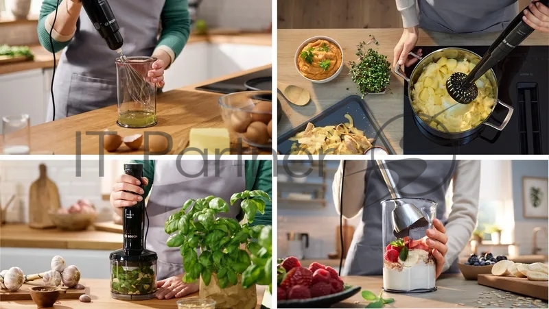 Блендер Bosch/ Блендер Bosch, погружной, мощность 1000 Вт, механическое управление, 5 насадок, цвет черный