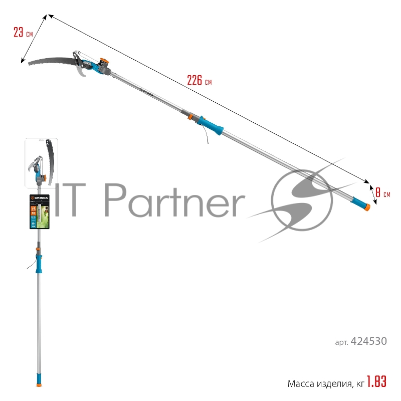 Высоторез с пилой GRINDA GX-4000, длина 2-2,8 м, пила 350мм, рез до 30 мм, лезвия из нержавеющей стали, телескопический, PROLine (424530)