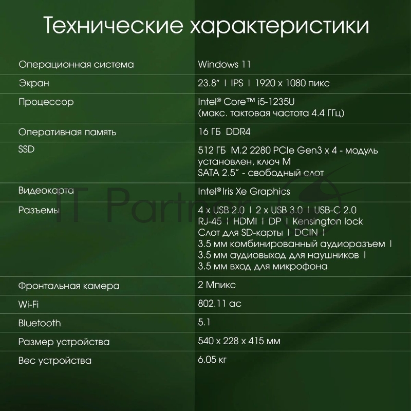 Моноблок Digma Pro Unity 23.8 Full HD i5 1235U (1.3) 16Gb SSD512Gb Iris Xe Windows 11 Professional GbitEth WiFi BT 90W клавиатура мышь Cam серый/черный 1920x1080
