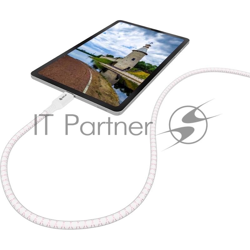 GCR Кабель 1.5m Type C-C POWER DELIVERY 18 W, бело-розовый, AL case белый, белый ПВХ, GCR-54535