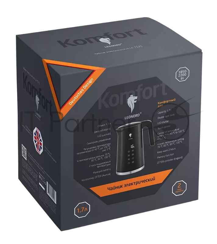 Чайник электрический LEONORD LE-1535 1,7л, нержавейка и пластик, черный