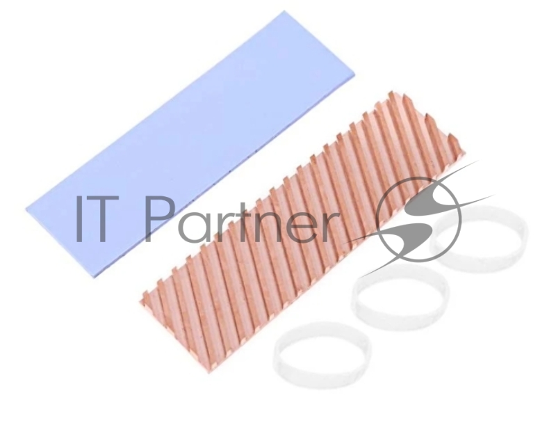 Медный радиатор для М.2 SSD с термопрокладкой 0,5 мм, диагональная прорезь, 70х20х6 мм