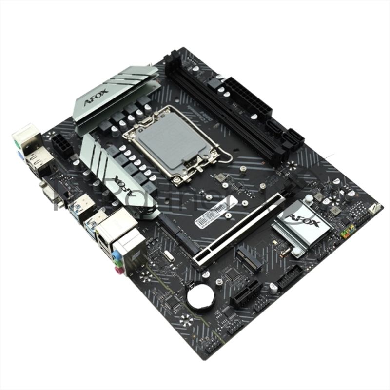 Материнская плата AFOX INTEL B760 s1700, 2xDDR5(64GB), 1xPCIe 4.0x16, 1xPCIe x1, 1xMPCIe, 1xHDMI, 1xD-Sub, 1xLAN(1GbE), 3xSATA, 1xM.2, 4xUSB 3.0, 2xUSB 2.0, 2xPS/2, mATX