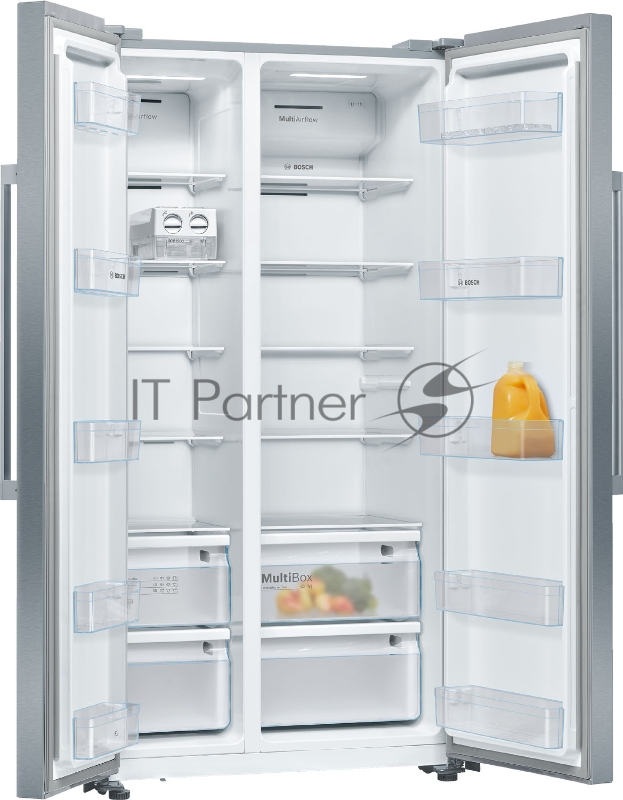 Холодильник Bosch KAN93VL30N типа side-by-side ,Serie 4, Full NoFrost, 178,7.6x90,8x70,7 см, LED освещение, Ящик для овощей и фруктов MultiBox, класс энергопотребления А++, полезный объём 560 (371/189) л, раздельная регулировка температуры с точность