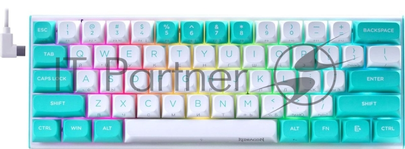 Игровая клавиатура REDRAGON FIDD бело-голубаая (USB, Redragon + magnetic, 61 кл., RGB подсветка)
