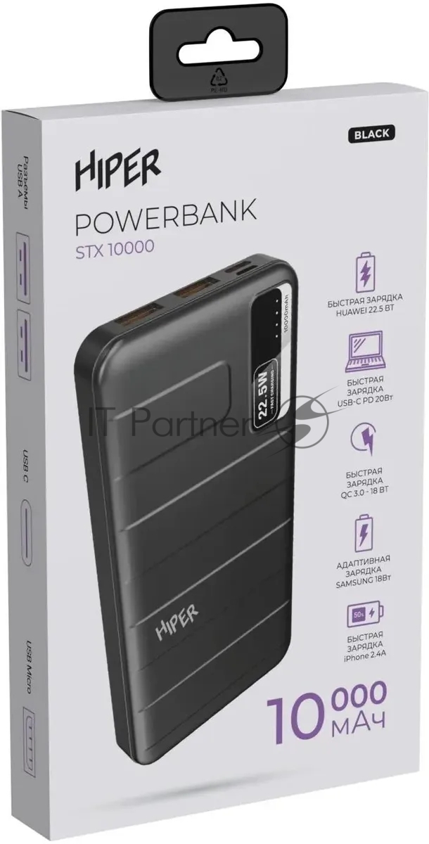 Внешний аккумулятор HIPER STX 10000 чёрный (10000 мАч, быстрая зарядка)