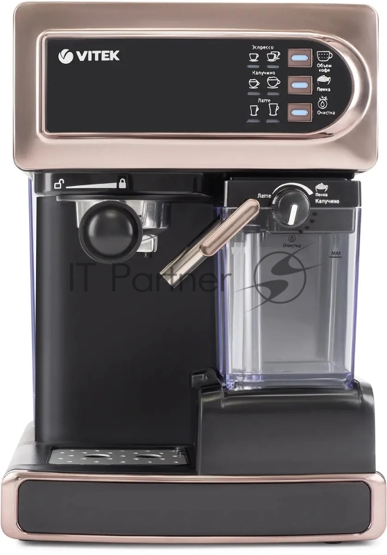 Кофеварка рожковая Vitek VT-1517 GD золотистый, исп. кофе - молотый, 1.65 л, 1238 Вт, 15 Бар