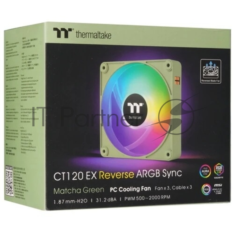 Вентилятор для корпуса Thermaltake CT120 EX Sync Matcha Reverse ARGB 120х120x25 зеленый 4-pin 31.2дБ (упак.:3шт) (CL-F198-PL12MG-A) Ret