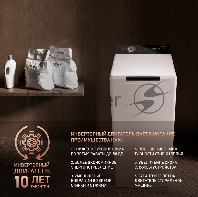 Стиральная машина Weissgauff WM 40580 TD Inverter белый, загрузка вертикальная 8 кг, 1300 об/мин, класс А+++