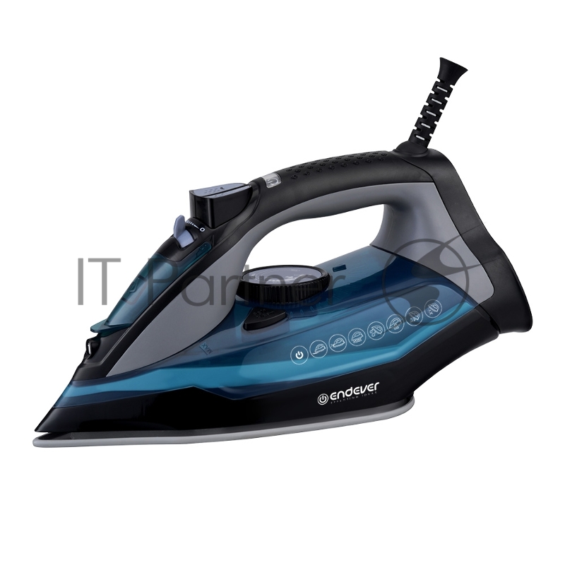 Утюг электрический ENDEVER DELTA-234, черный/лазурно-синий, мощность 2400 Вт, подача пара до 35 г/мин, паровой удар до 145 г/мин, 8 шт/уп