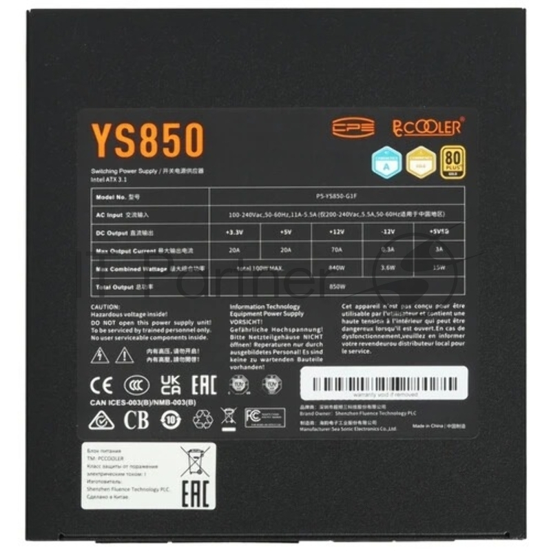 Купить Блок питания PCCooler P5-YS850-G1FFBK1-EU в Коврове. Забрать в магазине "Ваш Компьютер" г.Ковров пр-т Ленина 20