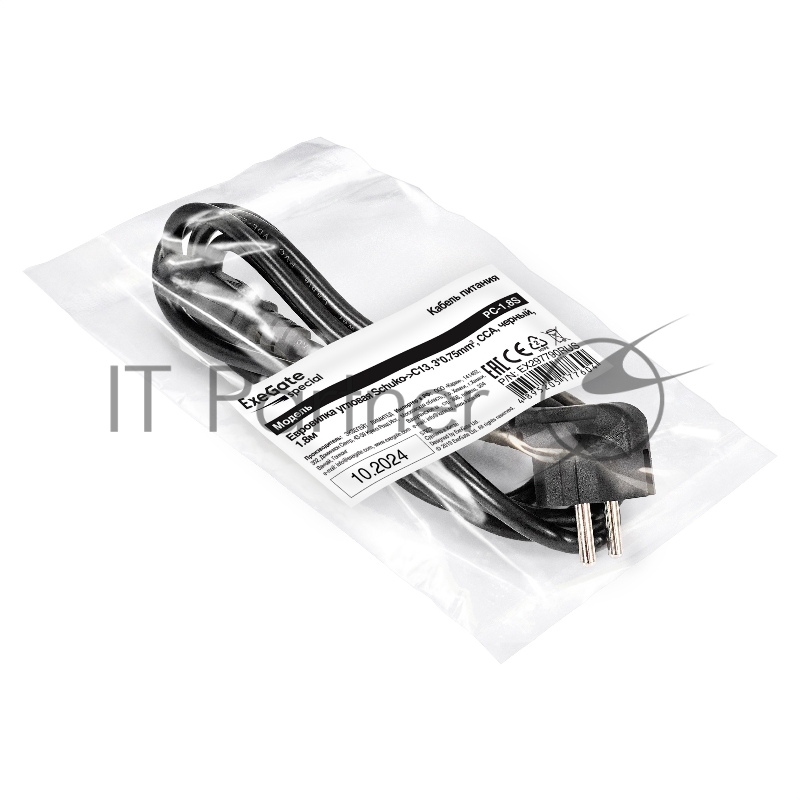 Кабель питания ExeGate Special PC-1,8S (Евровилка угловая Schuko->C13, 3*0.75mm2, CCA, черный, 1.8м)
