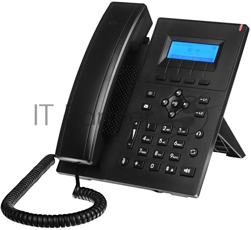 IP телефон, 2 линии SIP, 31 клавиша, ЖК дисплей 132*64 с подсветкой, телефонная книга 1000 контактов, 2 порта Ethernet RJ-45 LAN/PC 10/100Mbps, поддержка PoE 802.3AF Class 1, установка на стол/на стену, интерфейc для блока питания DC 5V 1A. ( не вход