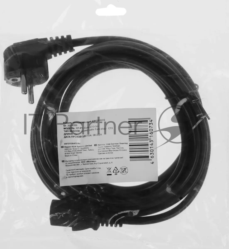 Кабель KingPrice KP-PC-Euro-C13-3m Евровилка IEC C13 3м черный