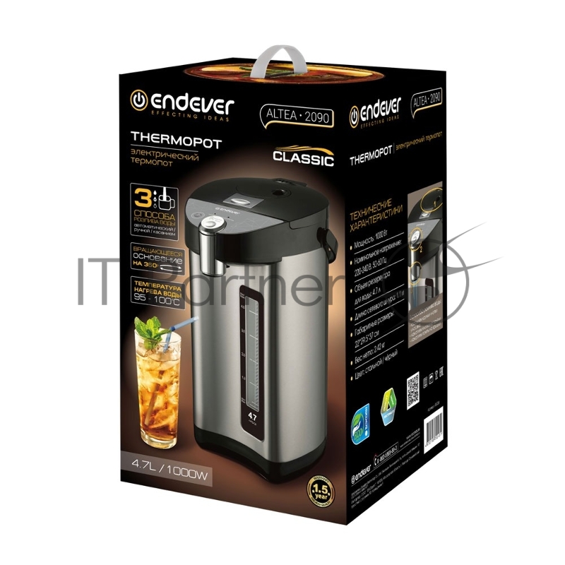 Термопот электрический Endever Altea-2090, стальной/черный, мощность 1000 Вт, емкость 4.7 л, 6 шт/уп