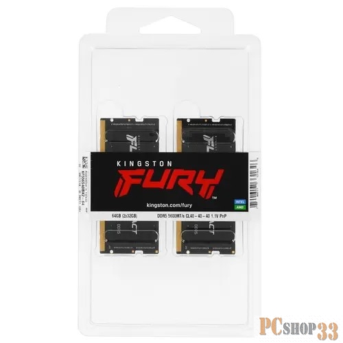[Модуль памяти] Память оперативная/ Kingston 64GB 5600MT/s DDR5 CL40 SODIMM (Kit of 2) FURY Impact PnP