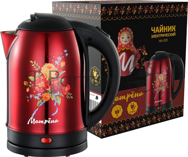 Чайник Матрена MA-005 электрический (2,0 л) стальной красный хохлома