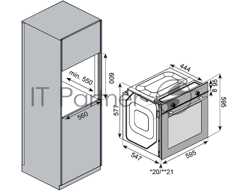 Встраиваемый духовой шкаф Kuppersberg HF 608 BX 80 л, High-Tech, 6 режимов, паровая очистка, черный, нерж. сталь